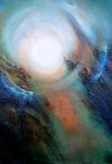 2010Dit schilderij is geinspireerd op de natuur en dan met name op water. Natuurlijk is het op een spirituele mystieke wijze weergegeven